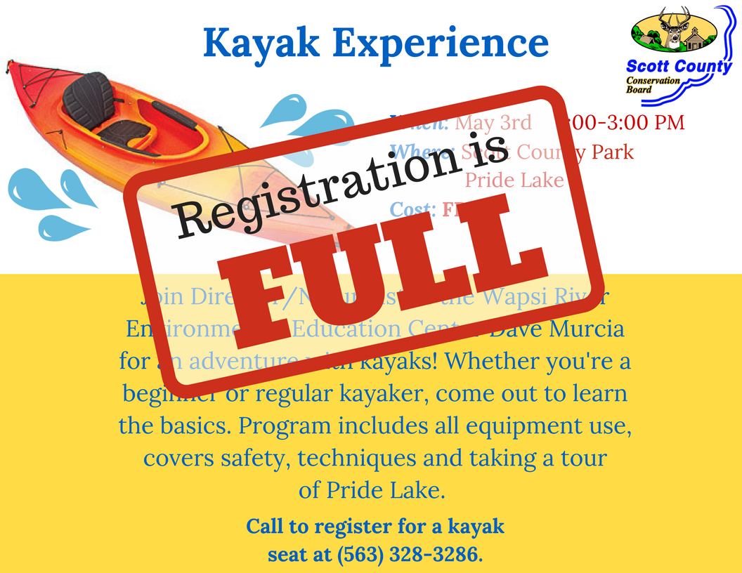 Join Director/Naturalist of the Wapsi River Environmental Education Center Dave Murcia for an adventure with kayaks! Whether you're a beginner or regular kayaker, come out and learn the basics. Program includes all equipment use, covers safety techniques and taking a tour of Pride Lake.