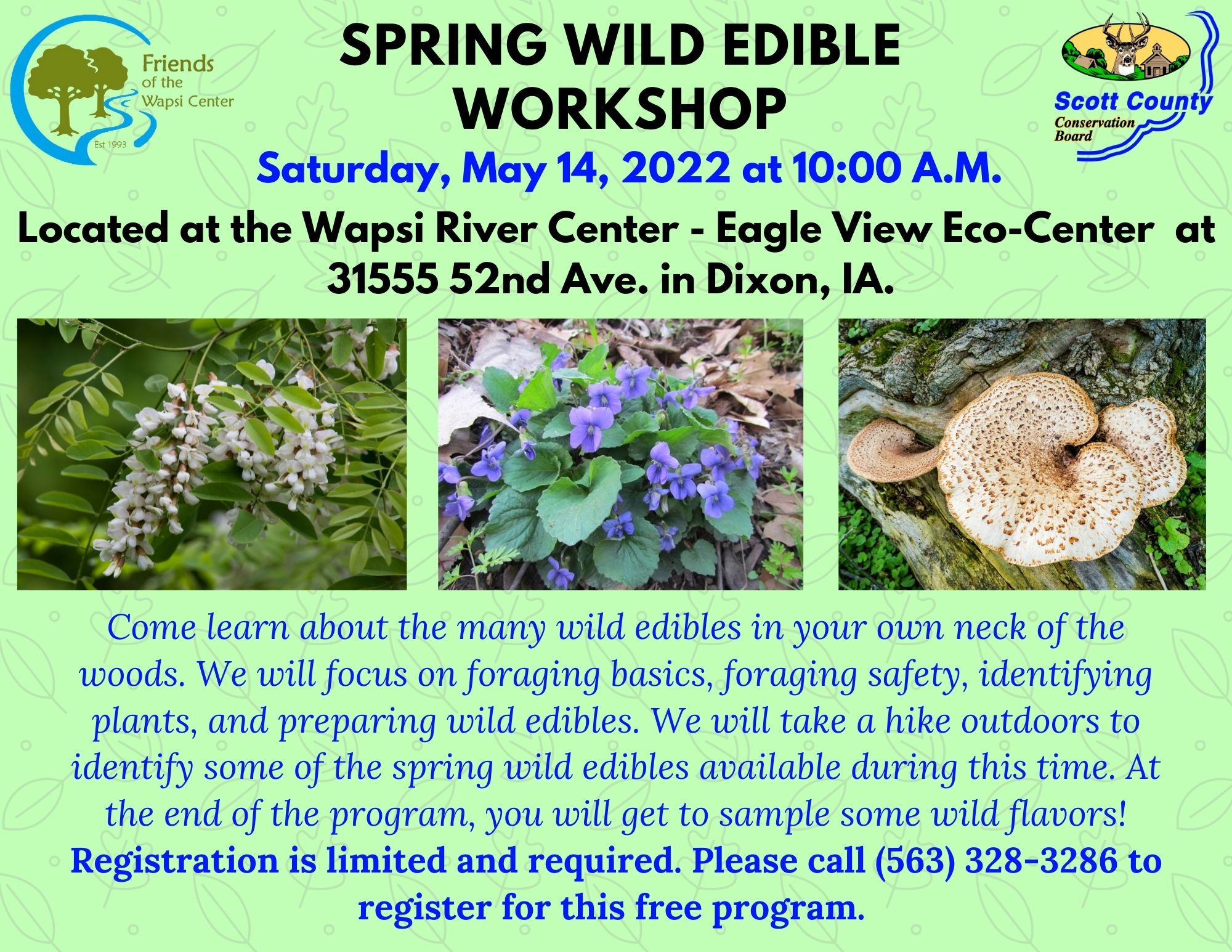 Come learn about the many wild edibles in your own neck of the woods. We will focus on foraging basics, foraging safety, identifying plants, and preparing wild edibles. We will take a hike outdoors to identify some of the spring wild edibles available during this time. At the end of the program, you will get to sample some wild flavors!