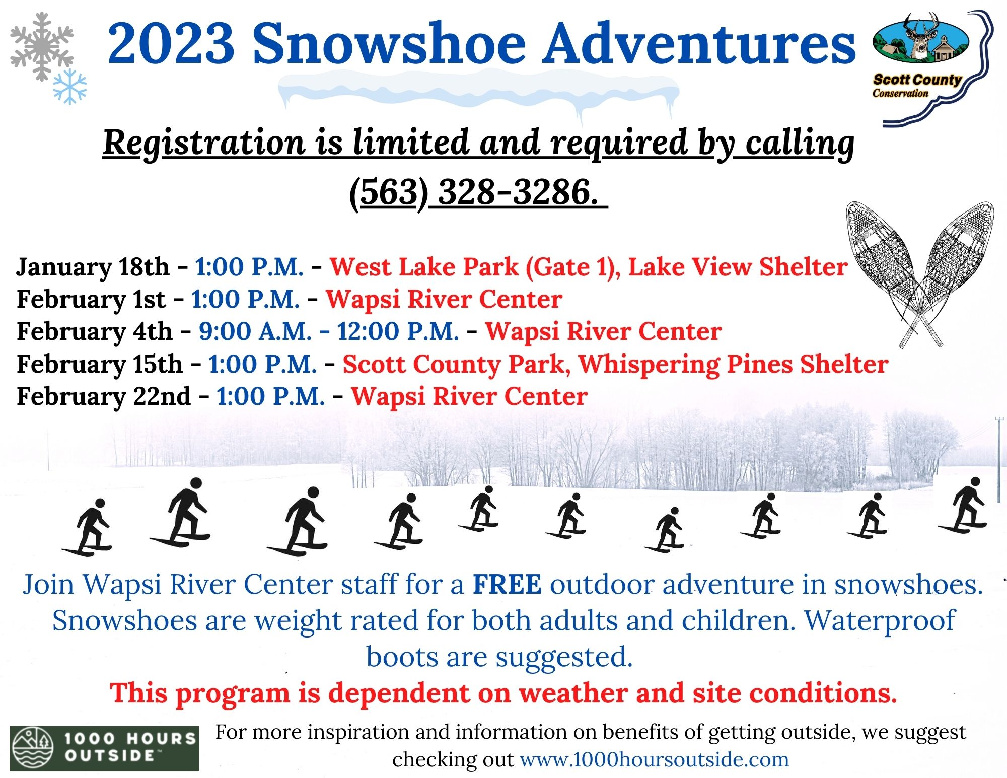 Join Wapsi Center Staff for a FREE outdoor adventure in snowshoes. Snowshoes are weight rated for both adults and children. Waterproof boots are suggested.