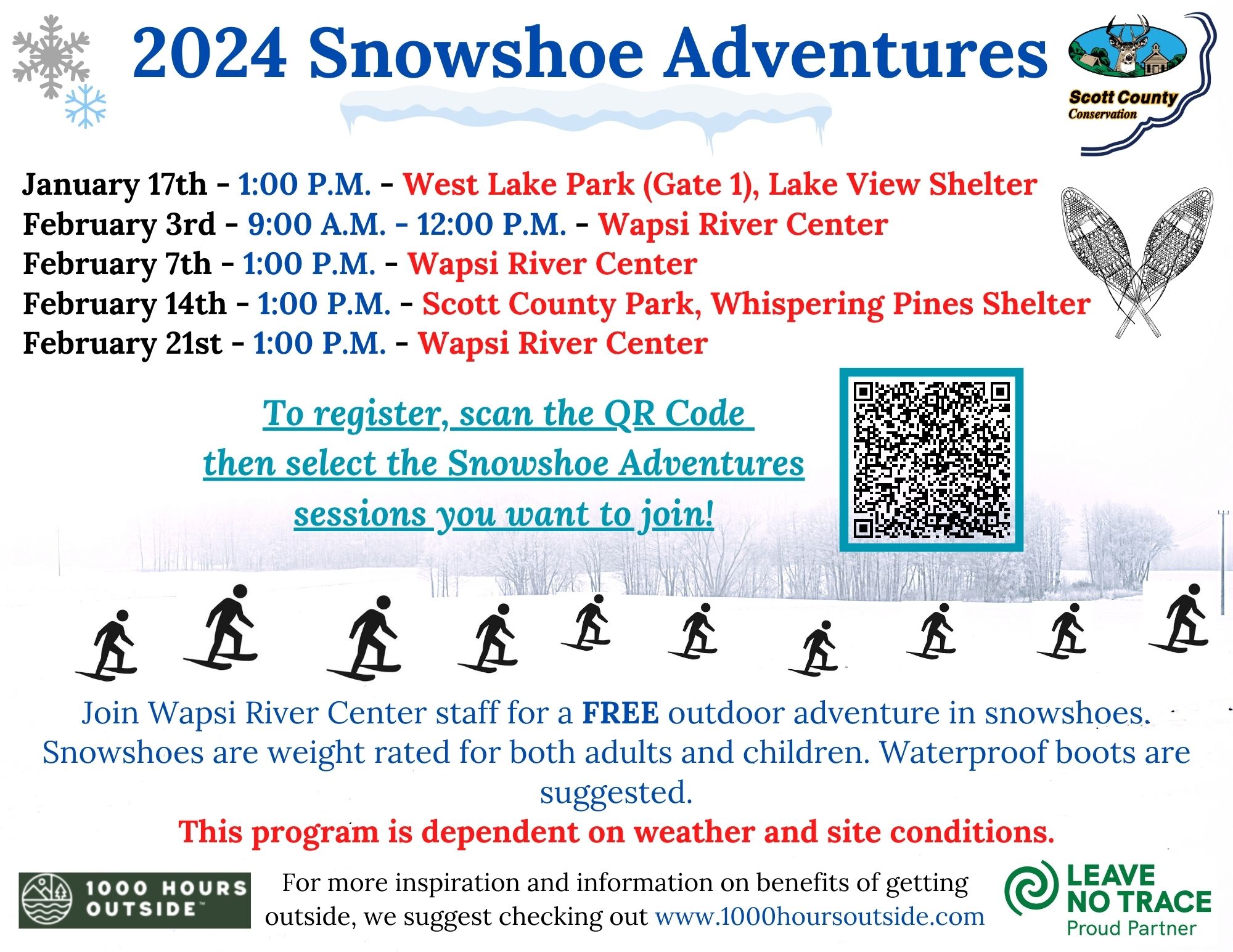 Join Wapsi Center Staff for a FREE outdoor adventure in snowshoes. Snowshoes are weight rated for both adults and children. Waterproof boots are suggested.