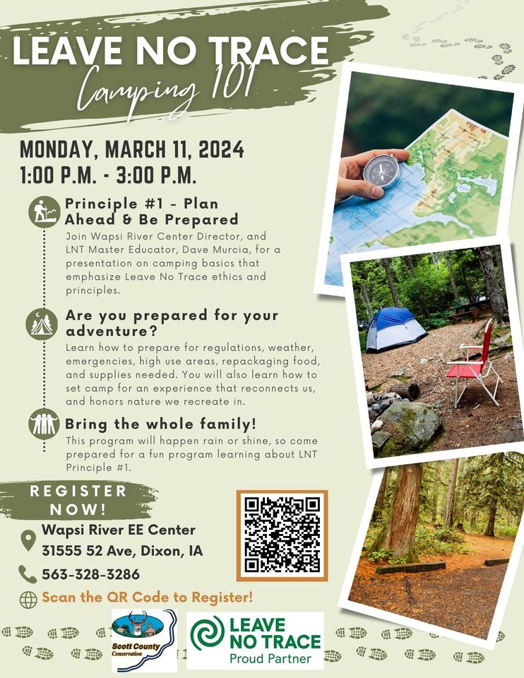 Join Wapsi River Center Director and LNT Master Educator, Dave Murcia for a presentation on camping basics that emphasize Leave No Trace ethics and principles.