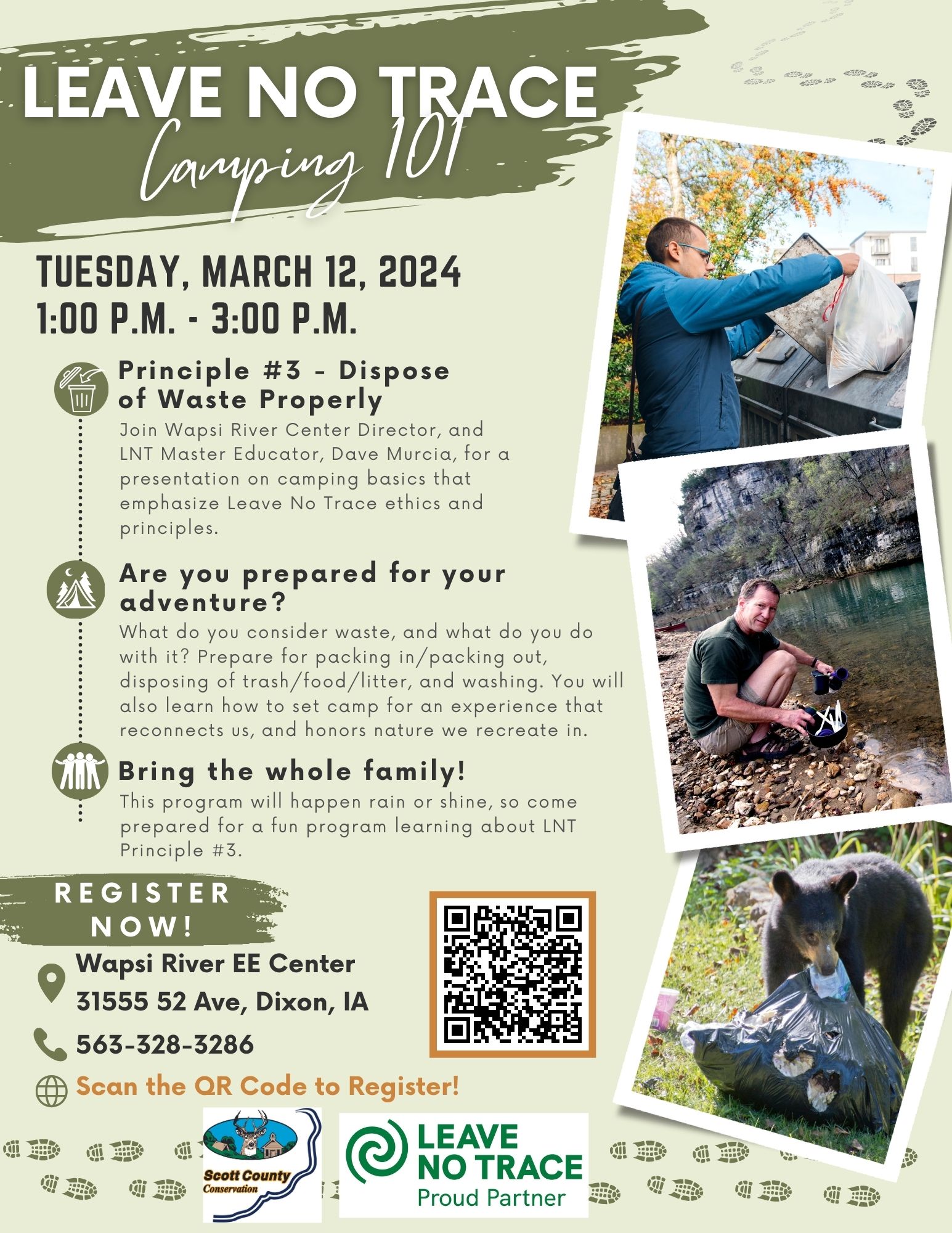 Join Wapsi River Center Director and LNT Master Educator, Dave Murcia for a presentation on camping basics that emphasize Leave No Trace ethics and principles.