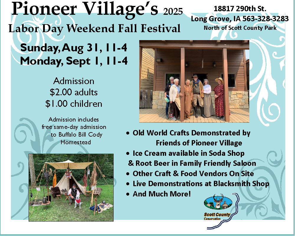 Pioneer Craft Demonstrations, Music, Food Vendors, Blacksmithing, Family Fun!!