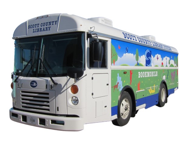 Come to the North Scott Farmers Market in Park View, IA outside Daisy Lane to visit the Bookmobile! You can check out books, movies, audio and more. Make sure to have your library card or photo ID to obtain a card!