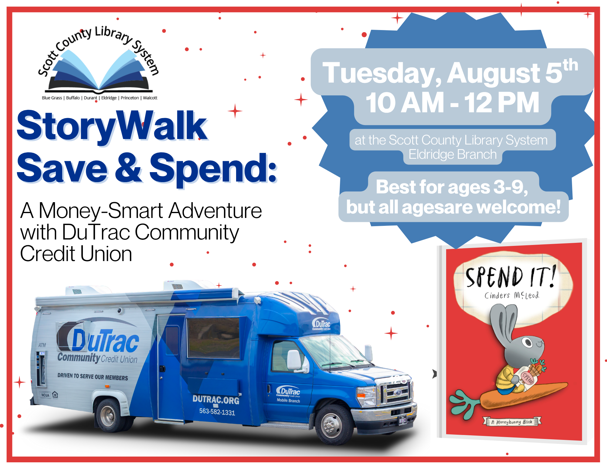 Families are invited to enjoy a StoryWalk featuring Spend It! by Cinders McLeod—a playful story that introduces kids to the basics of money choices.