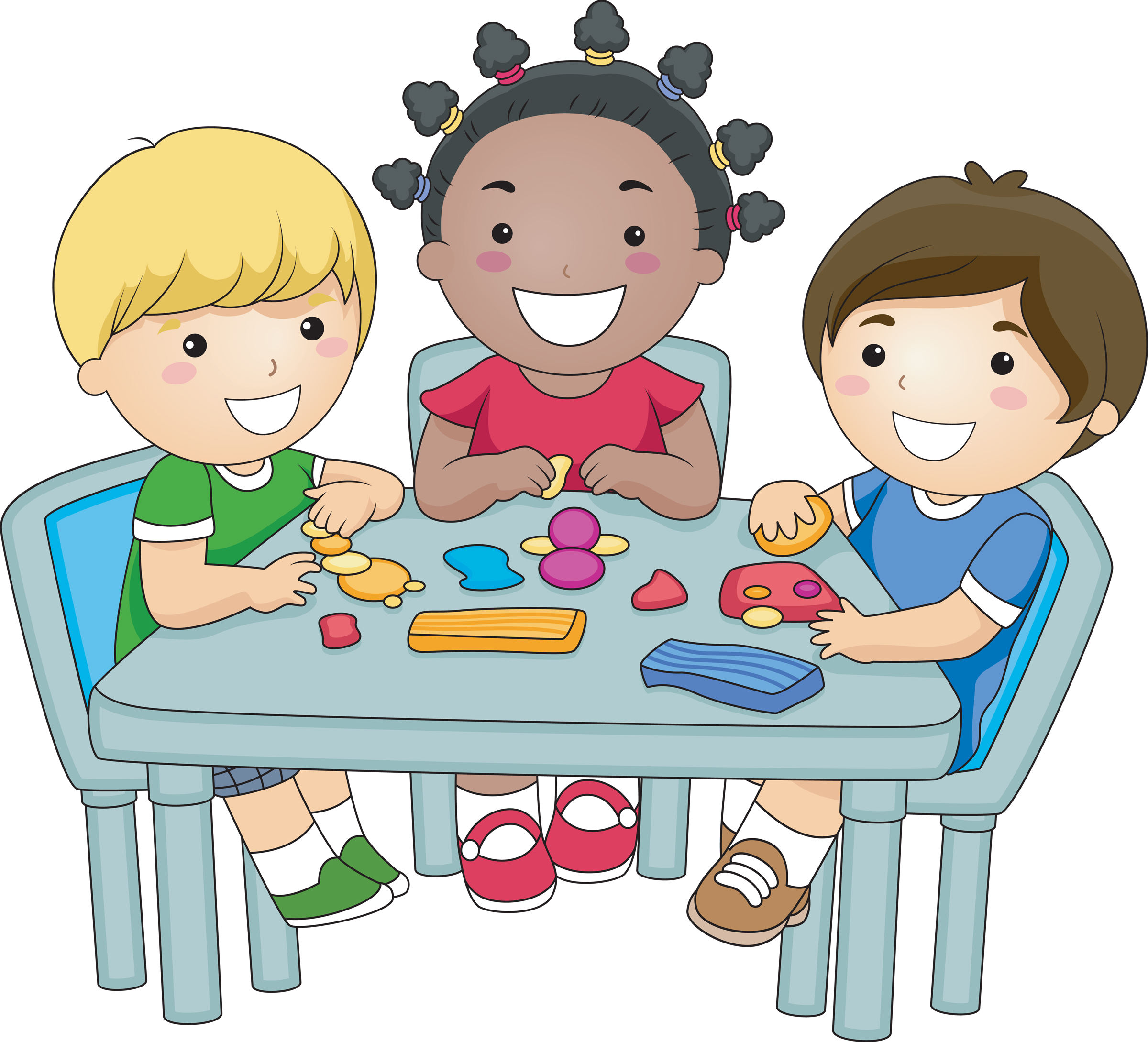Group of Children at a Table Playing With Clay
