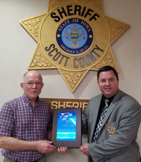 The Scott County Sheriff’s Office has received the 40 year participation award from the National Child Safety Council which was accepted by Major Thomas Gibbs on behalf of the Sheriff’s Office. This award was presented by John Hauschild from the National Child Safety Council, which is the oldest and largest 501(c)(3) federal tax-exempt, nonprofit charitable organization entirely dedicated to the safety of children. With a mission to prevent needless childhood accidents and help save lives through meaningful safety education.