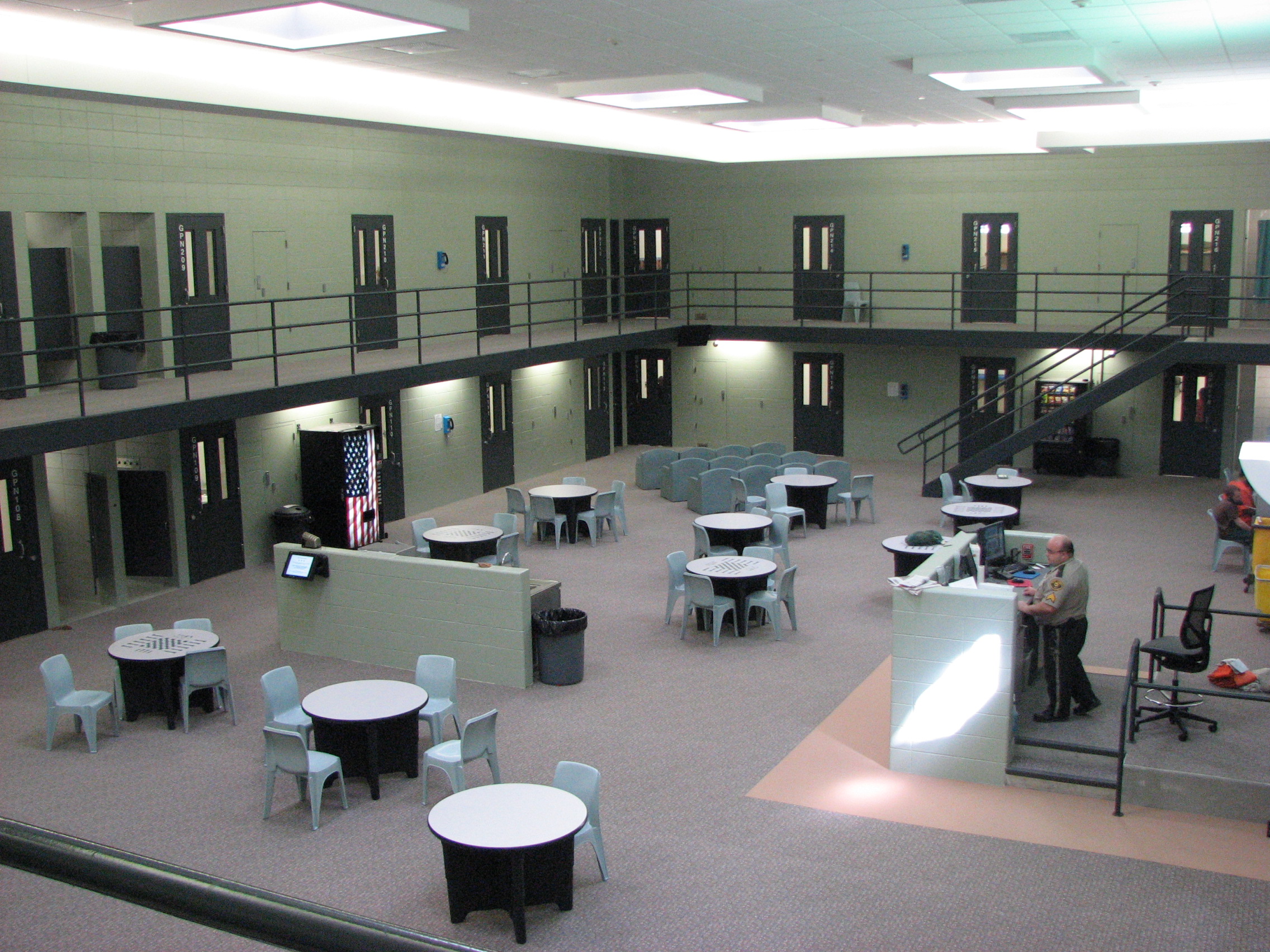 The housing areas are appropriately sized for both long and short-term use and include a dorm and flex housing. Some housing units contain sub-dayrooms that can be used to house inmates separately within the same housing unit and contain showers and phones. There are handicap accessible accommodations for female and male housing areas.