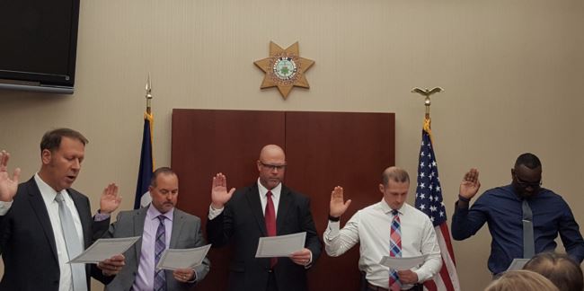 Scott County Sheriff's Office held a Swearing In Ceremony on November 9th.  Curt Wilson, Christopher Laye, Douglass Adams and Jonathon Johnson have been hired as the newest deputy sheriffs for Scott County.